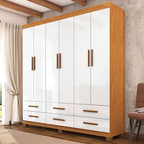 O(a) Guarda-Roupa Solteiro Denver 6 Portas 6 Gavetas 22120 Cinamomo/Branco - Carioca Móveis é produzido em MDP na escala de brilho Fosco e Semi-Brilho, e possui um grau de dificuldade de montagem: Médio.