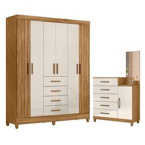 Guarda Roupa Solteiro Aruba e Cômoda Lisboa Freijó Off White Moval