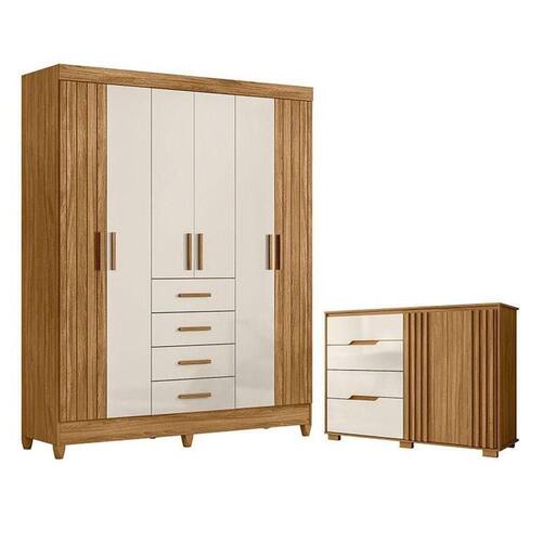Guarda Roupa Solteiro Aruba e Cômoda Texas Freijó Off White Moval