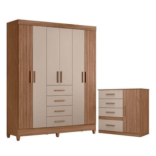 Organize seu quarto com elegância e o melhor custo benefício do mercado. Apresentamos o Guarda Roupa Solteiro Aruba e Cômoda Vênus fabricados pela Moval. Guarda Roupa com 06 portas, 04 gavetas com corrediças metálicas, puxadores em MDF, cabideiro e calceiros em alumínio para melhor organização interna, portas com detalhes frisados, espaço ideal para roupas longas e pés em PVC. A cômoda possui 04 gavetas com corrediças metálicas, 01 porta com detalhes ripados e puxadores em MDF. Fabricado com materiais de alta qualidade que garante resistência e durabilidade ao produto. Confira mais detalhes e aproveite!