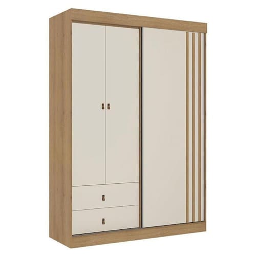 Guarda Roupa Solteiro Aspen 3 Portas Capuccino Off White Acetinado - THB