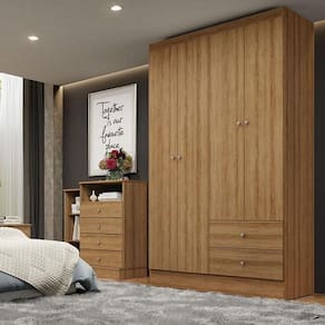 Com 4 portas funcionais o Guarda Roupa Solteiro Astro conta com o interior bem planejado e oferece espaço para roupas, calçados e acessórios, garantindo que tudo fique sempre em ordem. Compacto por fora e espaçoso por dentro, é um móvel que une beleza, durabilidade e funcionalidade para o dia a dia. É a escolha certa para quem busca organização com charme e praticidade. Seu acabamento em almendra acetinado traz um toque moderno e aconchegante, que combina facilmente com diferentes estilos de quarto.