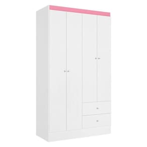 Guarda Roupa Solteiro Astro 4 Portas Branco Rosa Flex Acetinado - THB