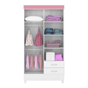 Guarda Roupa Solteiro Astro 4 Portas E 2 Gavetas Branco/rosa - Demóbile Branco/rosa Guarda Roupa Solteiro Astro 4 Portas e 2 Gavetas - Demóbile O Guarda-Roupa Astro é ideal para dormitórios de solteiro e juvenil, com espaço limitado. As prateleiras são atrativos para quem busca usabilidade no móvel. Para completar a funcionalidade dois cabideiros dispostos no mesmo compartimento facilitam a visualização das roupas. Sem dúvidas é um móvel completo, com várias opções de cores, gavetas que acompanham corrediças metálicas e puxadores ABS na cor prata. ESPECIFICAÇÕES: - Estrutura em MDP - Pintura UV - 4 Portas - Dobradiças metálicas - Puxadores em ABS na cor prata - 2 Gavetas externas - Corrediças metálicas - 2 Cabideiros de madeira - Interna com prateleiras - Pés em PVC