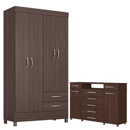 Guarda Roupa Solteiro Astro com Cômoda London Café - Demóbile