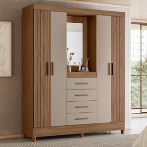 Guarda Roupa Solteiro Atenas 4 Portas e 4 Gavetas com Espelho - Moval