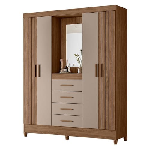 Guarda Roupa Solteiro Atenas com Espelho 4 Portas Carvalho Fendi – Moval