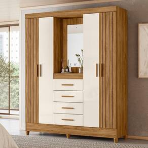 Guarda Roupa Solteiro Atenas com Espelho 4 Portas Freijó Off White Moval