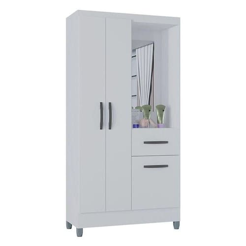 Guarda Roupa Solteiro Atlas 3 Portas Branco Brilho - Poquema