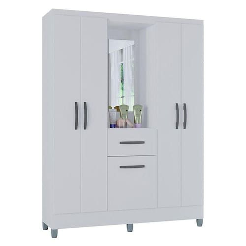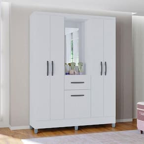 Guarda Roupa Solteiro Atlas Capelinha 5 Portas Branco Brilho - Poquema