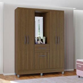 Guarda Roupa Solteiro Atlas Capelinha 5 Portas Castanho Brilho - Poquema