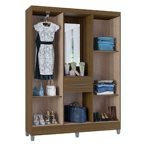 Guarda Roupa Solteiro Atlas Capelinha 5 Portas Castanho Brilho - Poquema