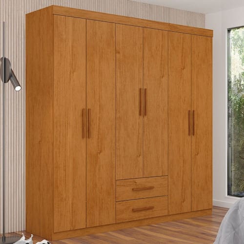 O(a) Guarda-Roupa Solteiro Aurora 6 Portas 2 Gavetas Cinamomo - Carioca Móveis é produzido em MDP na escala de brilho Fosco e Semi-Brilho, e possui um grau de dificuldade de montagem: Médio.