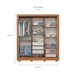 que tal o guarda-roupa briz? móvel funcional e completo, o guarda-roupa briz vai compor seu quarto ou closet com maestria. enquanto o amplo espaço interno tem compartimentos ideias para organizar todos os seus itens e facilitar a rotina diária, ele também tem visual atemporal, perfeito para quem busca por um item que combina bem com tudo - assim fica fácil montar a decoração que você sempre sonhou para seu espaço. É ou não a escolha perfeita para levar mais organização ao seu dia a dia e ainda deixar seu dormitório completinho? :) Marca: Modern