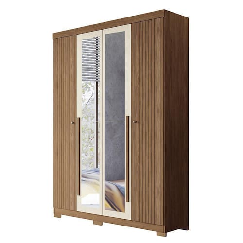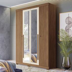 Guarda Roupa Solteiro Buriti Ripado 4 Portas com Espelho e Pés - Santos Andirá