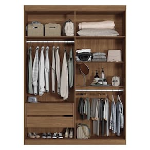 O Guarda-Roupa Buriti possui um design diferenciado e atemporal. São 4 portas, sendo 2 delas em MDF e com detalhe usinado ripado e puxadores pontuais em ABS para abertura. As demais portas em MDP seguem com puxadores em MDF revestido em formato grande. Internamente, possui 5 amplas prateleiras com muito espaço para guardar os pertences, 2 cabideiros em alumínio de excelente qualidade para pendurar as roupas, 2 gavetas com corrediças telescópicas que suportam muito mais peso, compartimento para guardar pertences de valor. Externamente, o acabamento é em textura Reverse semi fosco, suave ao toque, e que facilita a limpeza.