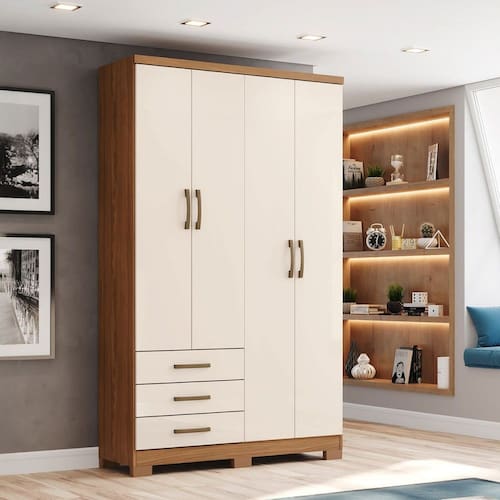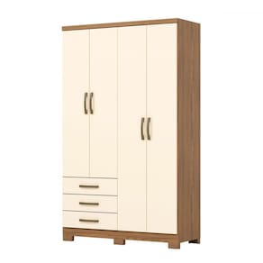 O(a) Guarda-Roupa Solteiro Caju 4 Portas 3 Gavetas Natural/Off White - Henn é produzido em MDP na escala de brilho Brilho, e possui um grau de dificuldade de montagem: Médio.