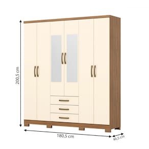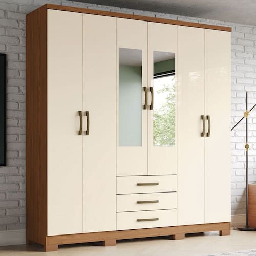O(a) Guarda-Roupa Solteiro Caju 6 Portas 3 Gavetas com Espelho Natural/ Off White - Henn é produzido em MDP na escala de brilho Brilho e Fosco, e possui um grau de dificuldade de montagem: Médio.