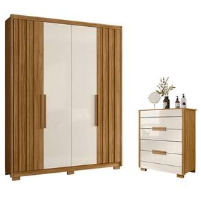 Guarda Roupa Solteiro Califórnia e Cômoda Dhara Freijó Off White - Moval