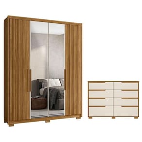 Guarda Roupa Solteiro Califórnia 4 Portas Freijó Off White com Espelho - Moval