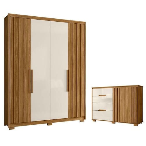 Guarda Roupa Solteiro Califórnia 4 Portas Freijó Off White - Moval