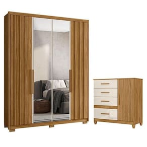 Guarda Roupa Solteiro Califórnia 4 Portas Freijó Off White com Espelho - Moval