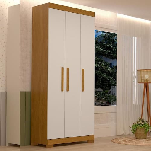 Transforme seu espaço com elegância e funcionalidade com nosso guarda-roupa Canadá de 3 portas. Compartimentos espaçosos oferecem amplo armazenamento para todas as suas roupas e acessórios. Equipado com 2 gavetas deslizantes de alta qualidade, corrediças telescópicas garantem acesso suave e conveniente. O cabideiro em alumínio proporciona suporte robusto para suas peças mais volumosas. Os puxadores em MDF revestido adicionam um toque de sofisticação. Organize com estilo e praticidade neste guarda-roupa versátil.