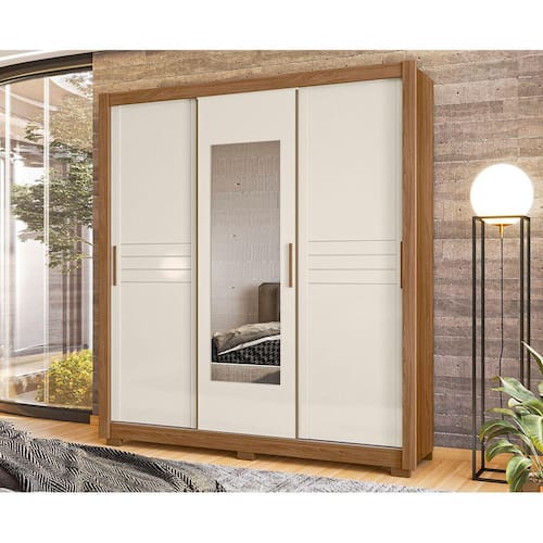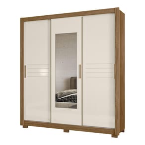 Guarda Roupa Solteiro Canadá Freijó Off White Com Espelho Moval - Marrom Chocolate