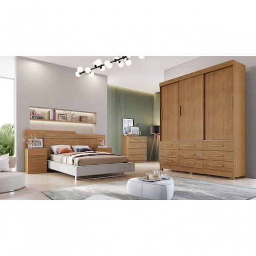 O Guarda Roupa Capri vai proporcionar um ambiente aconchegante mantendo um visual sofisticado e funcional. Composto por peças de extrema qualidade e com excelente espaço interno bem distribuídos, oferecendo máxima organização de forma prática. Fabricado em 100% MDP, 3 portas de correr, possui 9 gavetas com corrediças telescópicas, puxadores com acabamento amadeirado e cabideiros em alumínio. Amplo espaço interno. Aproveite!