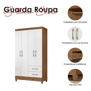 Guarda Roupa Solteiro Chile 4 Portas Branco - Moval