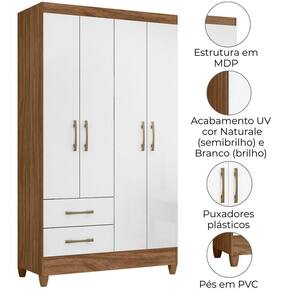 Com design inteligente para valorizar qualquer ambiente, o Guarda-Roupa Solteiro Chile oferece praticidade e organização no dia a dia. Estrutura em MDP (15/ 12 mm) e acabamento em pintura UV. Composto por portas com dobradiças metálicas, cabideiro interno (MDP revestido), prateleiras e gavetas com corrediças metálicas. Produto com dupla opção de montagem: pés em PVC ou sapatas plásticas (2 mm) conforme preferência do cliente. Este produto será entregue em 02 volumes.