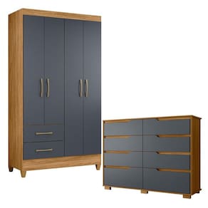 Guarda Roupa Solteiro Chile e Cômoda Georgia Freijó Cinza – Moval
