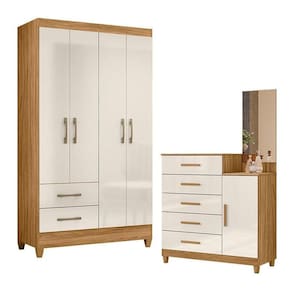 Guarda Roupa Solteiro Chile e Cômoda Lisboa Freijó Off White Moval