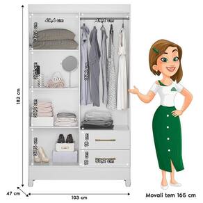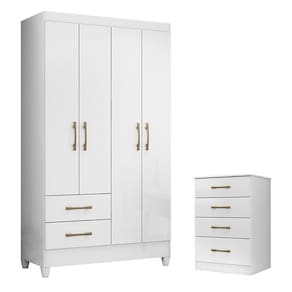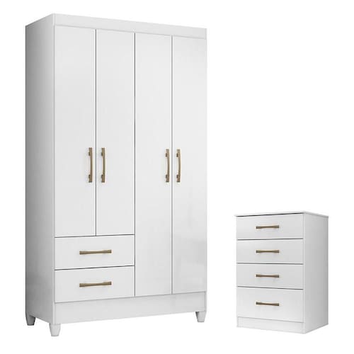 Guarda Roupa Solteiro Chile e Cômoda MS913 Branco Brilho – Moval