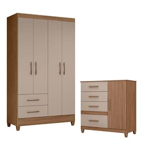 Guarda Roupa Solteiro Chile e Cômoda Vênus com Pés Carvalho Fendi Moval