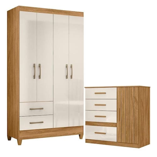 Guarda Roupa Solteiro Chile e Cômoda Vênus Freijó Off White – Moval