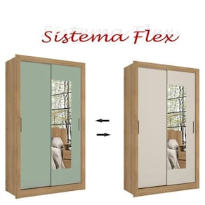 Guarda Roupa Solteiro City 2 Portas Flex Glass Capuccino Off White Menta - THB