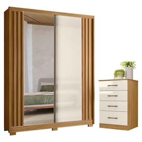 Guarda Roupa Solteiro Colorado e Cômoda MS913 Freijó Off White com Espelho - Moval