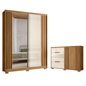 Começou a procurar móveis para seu quarto? Então apresentamos para você este belo conjunto composto pelo guarda roupa da linha Colorado e a cômoda da linha Texas. O guarda roupa conta com duas portas, sendo uma delas com espelho. Internamente oferece três gavetas com excelente organização. A cômoda complementa o visual. Possui duas portas, além de quatro gavetas. Assim como o guarda roupa, a cômoda possui detalhes ripados, corrediças telescópicas e pés em PVC. Fabricados pela Moval, são desenvolvidos em MDP, ideal para quem busca qualidade, design moderno e praticidade para compor o quarto. Aproveite e garanta já o seu!
