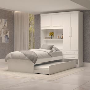 O(a) Guarda-Roupa Solteiro com Cama Milena 4 Portas 2 Gavetas 100% Mdf Flex Branco - Acp Móveis é produzido em 100% MDF na escala de brilho Brilhante, e possui um grau de dificuldade de montagem: Difícil.