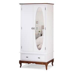 Guarda Roupa Solteiro Com Espelho 2 Portas 1 Gaveta 60406E Linz Móveis - Branco/Imbuia