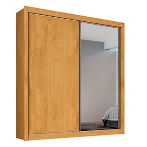 Guarda Roupa Solteiro com Espelho 2 Portas 4 Gavetas - Zurique-Amêndoa - Móveis Europa