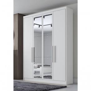 Guarda Roupa Solteiro com Espelho 4 Portas 3 Gavetas - Sevilha-Branco - Móveis Horizonte