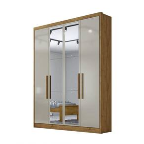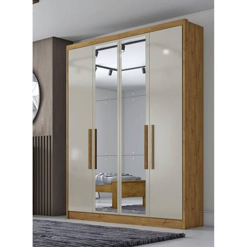 Guarda Roupa Solteiro com Espelho 4 Portas 3 Gavetas - Sevilha-Cumaru/Fendi - Móveis Novo Horizonte