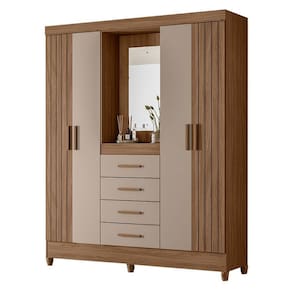 Organize seu quarto com elegância e o melhor custo benefício do mercado. Apresentamos o Guarda Roupa Solteiro Atenas e Cômoda Georgia fabricados pela Moval. Guarda Roupa possui quatro portas, quatro gavetas equipadas com corrediças metálicas, modelo com capelinha central com espelho, destacando o visual refinado e moderno, puxadores em MDF, cabideiros em alumínio para melhor organização interna e pés em PVC. A cômoda possui 08 gavetas com corrediças telescópicas, puxadores usinados e pés em PVC. Fabricado com materiais de alta qualidade que garante resistência e durabilidade ao produto. Confira mais detalhes e aproveite!