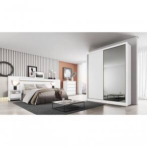 Guarda Roupa Solteiro com Espelho MDF 3 Gavetas - Toledo-Branco - Móveis Novo Horizonte