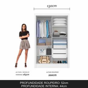 Materiais - MDP - Corrediças Metálicas - Puxadores em Polietileno - Cabideiro em Madeira - Revestimento: FF (Finish Foil) - Tonalidade: Branco - Prateleiras e Gavetas suportam até 5kg distribuídos.