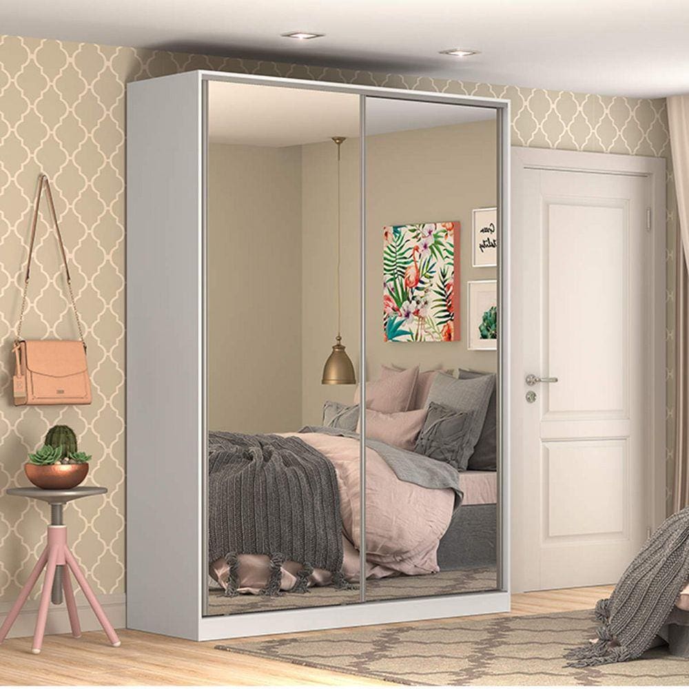 Guarda Roupa Solteiro com Espelho 2 Portas 3 Gavetas Nova Mobile Branco