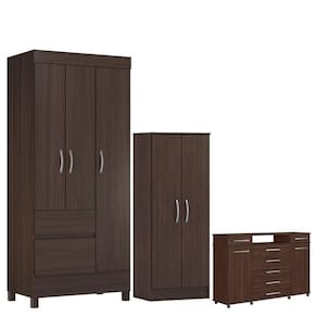 Guarda Roupa Solteiro com Multiuso Viena com Cômoda London Café - Demóbile