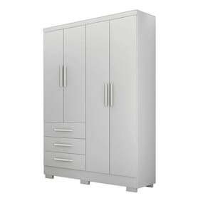 Guarda Roupa Solteiro com Pés 4 Portas 3 Gavetas - Berlim-Branco - Móveis Novo Horizonte